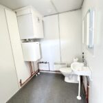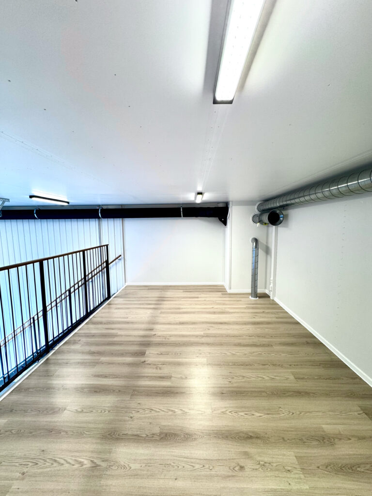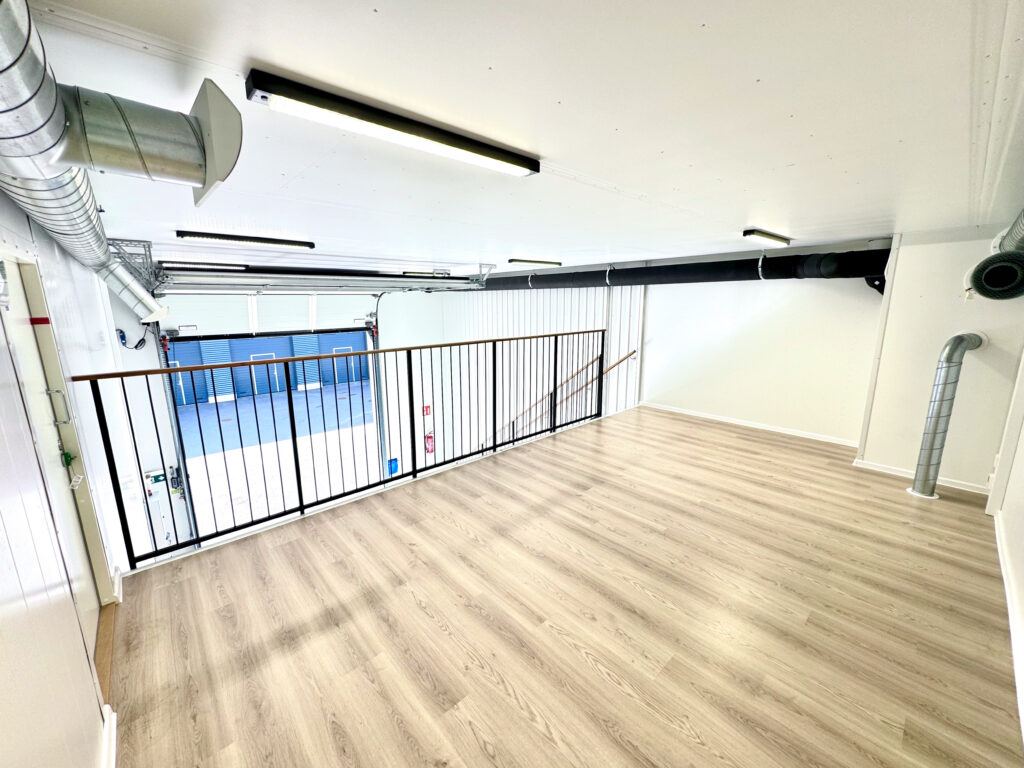 Nosto-oven yläikkunapaneeleista tulviva luonnonvalo, tehokas valaistus, wc ja koneellinen ilmanvaihto lämmön talteenotolla huolehtivat miellyttävistä olosuhteista koko päivän. Wc-tilaan on mahdollista myös asentaa suihkukaappi. Pistorasioita on enemmän kuin varastotiloissa – tarpeeksi esimerkiksi IT-laitteille ja työkoneille.