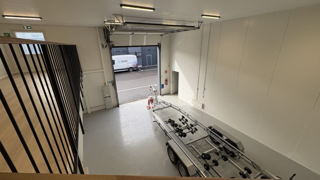 Nosto-oven yläikkunapaneeleista tulviva luonnonvalo, tehokas valaistus, wc ja koneellinen ilmanvaihto lämmön talteenotolla huolehtivat miellyttävistä olosuhteista koko päivän. Wc-tilaan on mahdollista myös asentaa suihkukaappi. Pistorasioita on enemmän kuin varastotiloissa – tarpeeksi esimerkiksi IT-laitteille ja työkoneille.