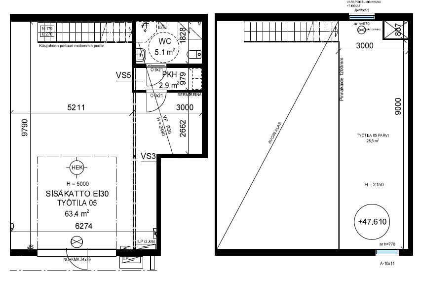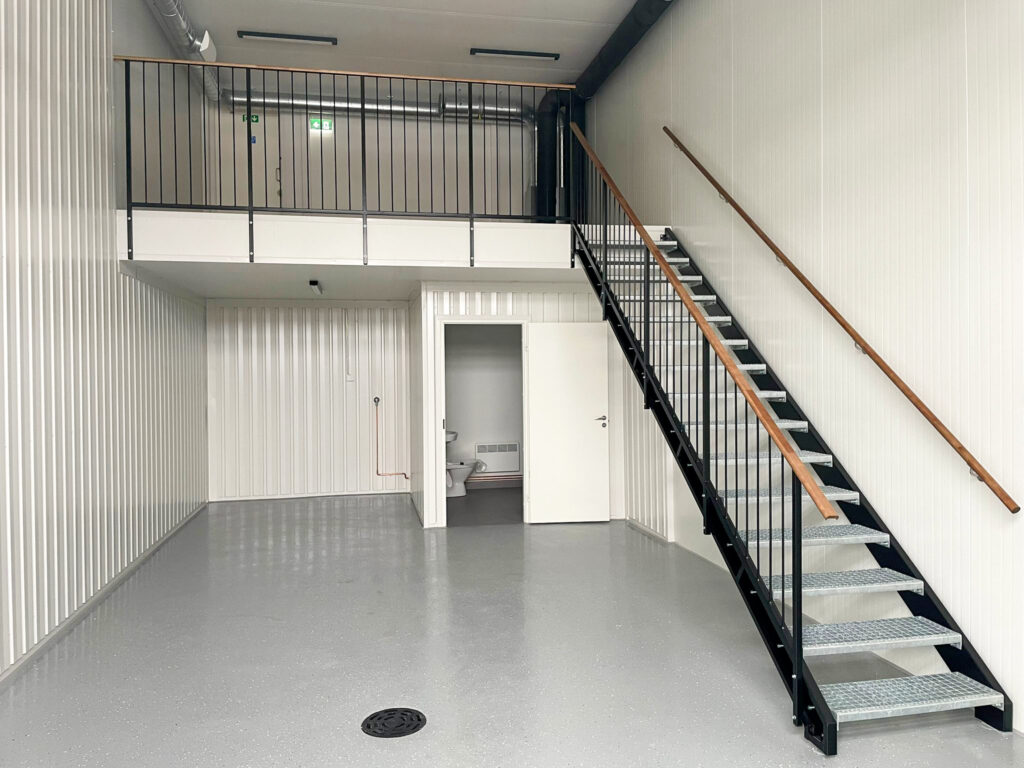 Työtilaan kuuluu erillinen wc (5,1 m²) sekä pesuhuone / pukeutumistila (2,9 m²), mikä tekee tilasta soveltuvan myös kokopäiväiseen työskentelyyn. Selkeä ja avoin pohjaratkaisu tukee monenlaisia käyttötarkoituksia, kuten työ- ja toimistotilaa, yrityksen tukikohtaa, verkkokaupan toimintatilaa tai aktiiviharrastajan käyttöä.