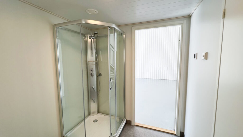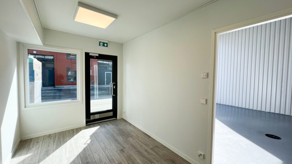 Työskentelymukavuutta lisäävät erillinen taukotila (11,7 m²), pesuhuone/WC (5,1 m²) sekä tekninen tila (2,4 m²). Kokonaisuus on suunniteltu niin, että arki sujuu vaivattomasti myös pidempien työpäivien aikana. Nosto-oven yläikkunapaneelit tuovat tilaan luonnonvaloa, ja tehokas valaistus sekä koneellinen ilmanvaihto takaavat miellyttävät olosuhteet ympäri vuoden.