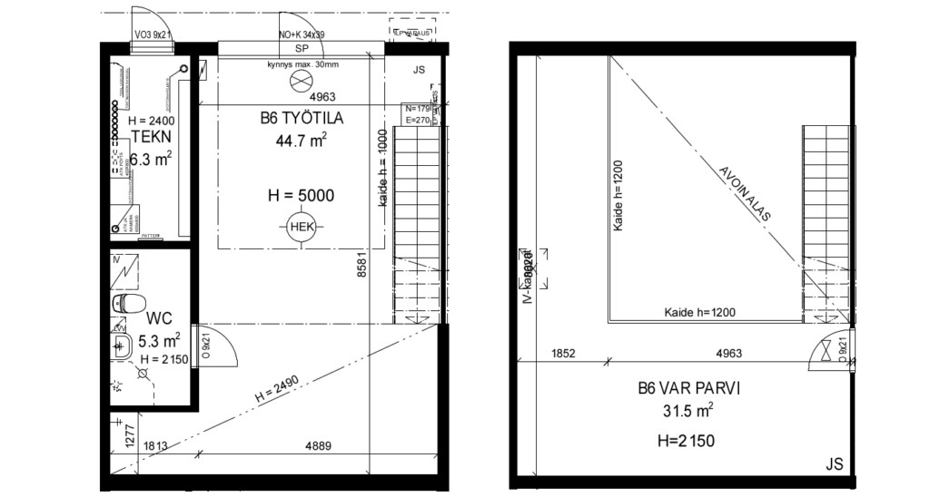 Tämä Talliosake-työtila on suunniteltu kokopäiväiseen työskentelyyn sekä aktiiviharrastajalle, joka tarvitsee toimivat ja viihtyisät puitteet pitkäkestoiseen tekemiseen. Alakerran 50 m² työtila tarjoaa vaikuttavan 5 metrin tilakorkeuden, joka tekee tilasta avaran ja mahdollistaa tehokkaan työskentelyn myös tilaa vaativien laitteiden kanssa.