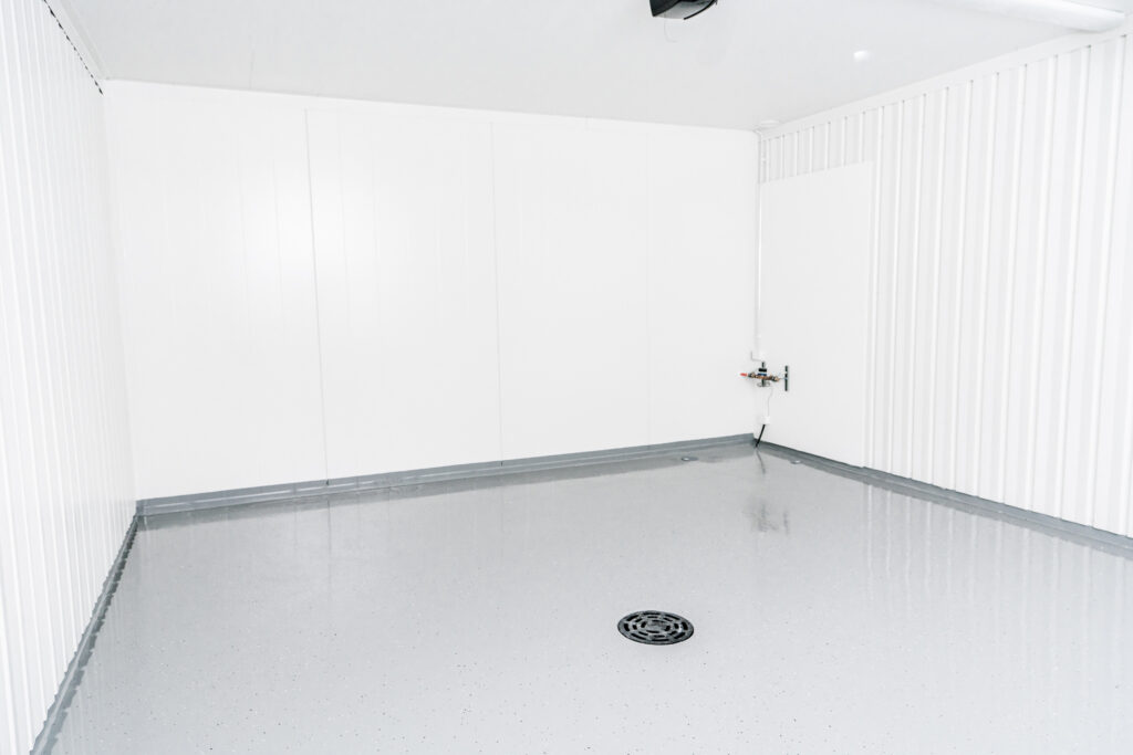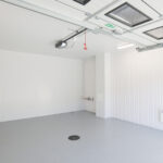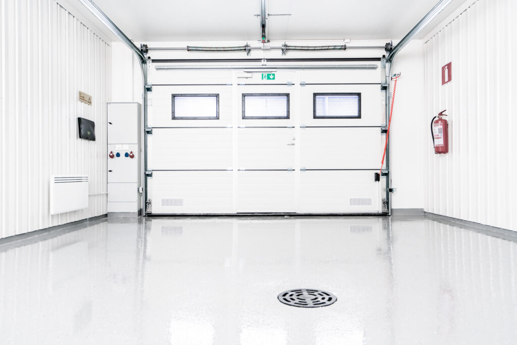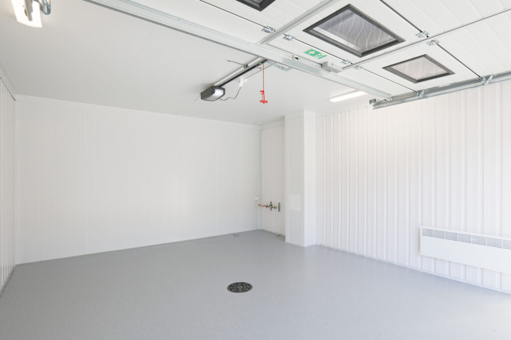Tilan 2,49 metrin korkeus mahdollistaa sujuvan työskentelyn ja monipuoliset säilytysratkaisut. Nosto-oven kautta kulku on vaivatonta.