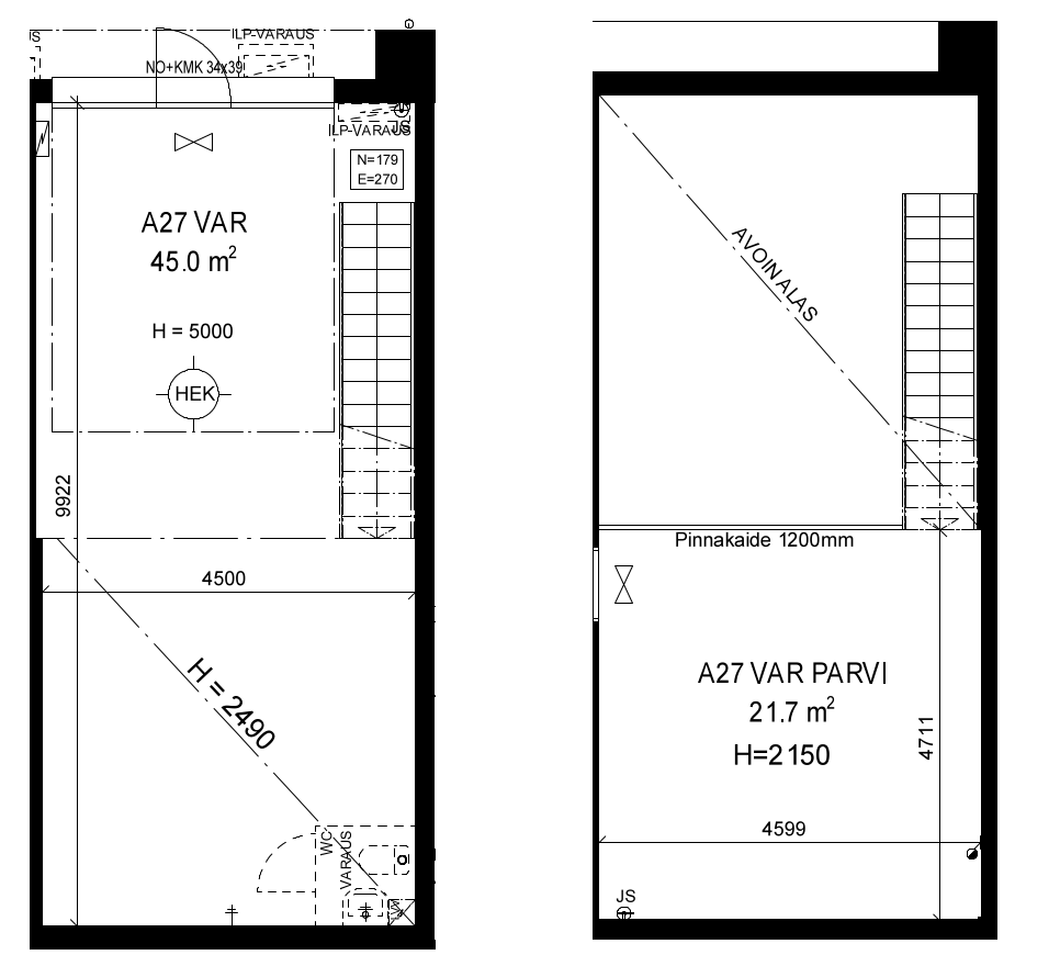 Tilaan kuuluu 21,7 m² parvi, joka tuo merkittävästi lisäpinta-alaa varastointiin tai muuhun tukikäyttöön. Parven korkeus on 2,1 m, ja kiinteät portaat sekä pinnakaide tekevät kulkemisesta turvallista ja sujuvaa.